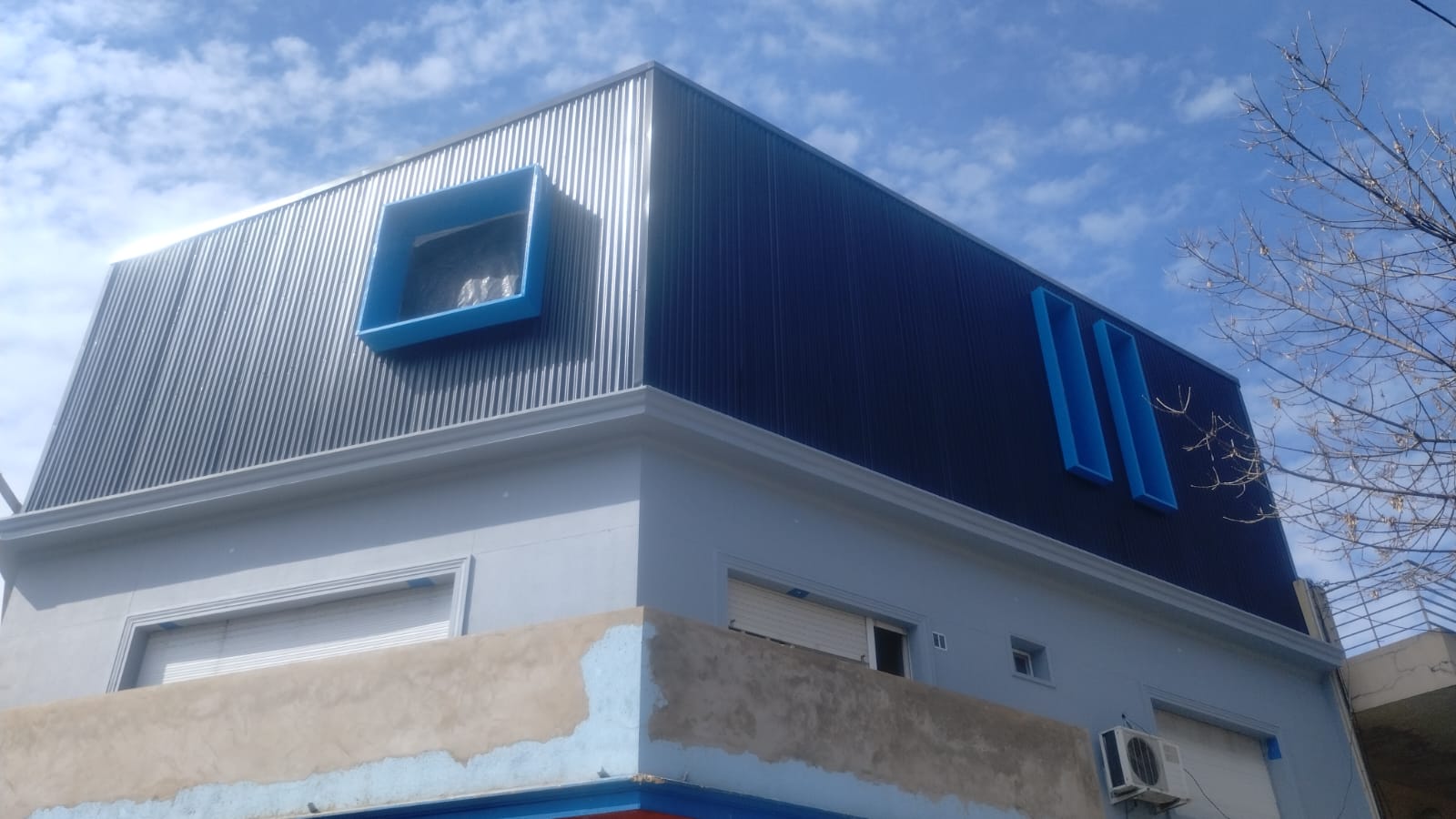 - Revestimiento de chapa galvanizada color negro trapezoidal.