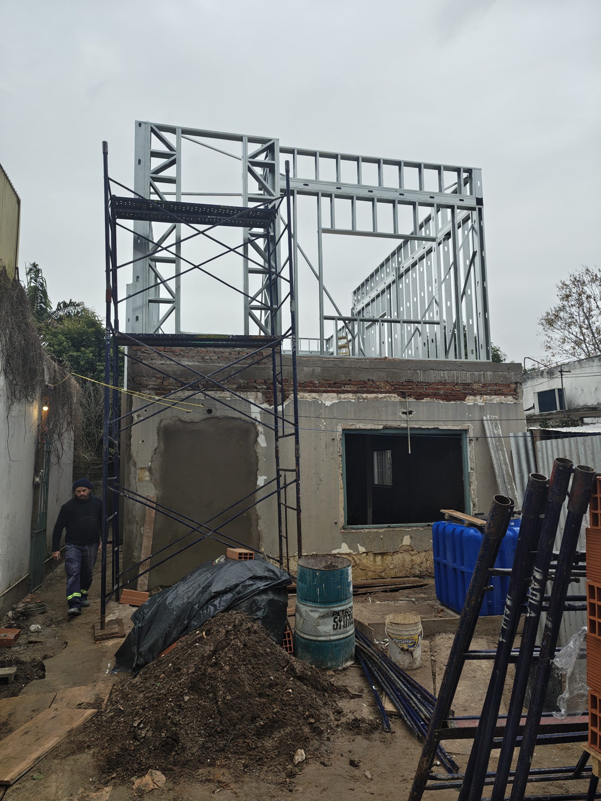 Ampliación en planta alta con sistema Steel Frame, albañilería, instalación eléctrica, sanitarios y pintura.
