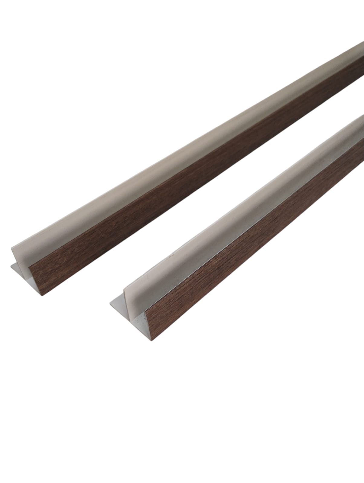 Perfil perimetral tipo F foliado, diseñado para terminaciones interiores prolijas y decorativas. Se utiliza como remate perimetral en cielorrasos y revestimientos, aportando un acabado estético uniforme y moderno.